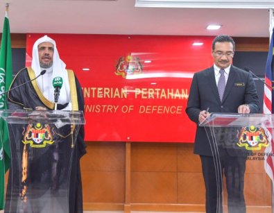 Le Ministre Malaisien de la défense M. Hishammuddin Hussein et le Cheikh et Dr. Mohammad bin Abdoulkarim Al-Issa, Secrétaire général de la Ligue Islamique Mondiale et le Superviseur Général du centre de lutte Idéologique, ont tenu une conférence de presse dans la capitale malaisienne de Kuala Lumpur, et ce , dans le cadre de l’annonce faite par le Royaume d’Arabie Saoudite et la Malaisie autour de l’ouverture d’un centre pour la paix Mondiale siégeant en Malaisie et portant le nom de  » centre de Roi Salman pour la Paix Mondiale ».