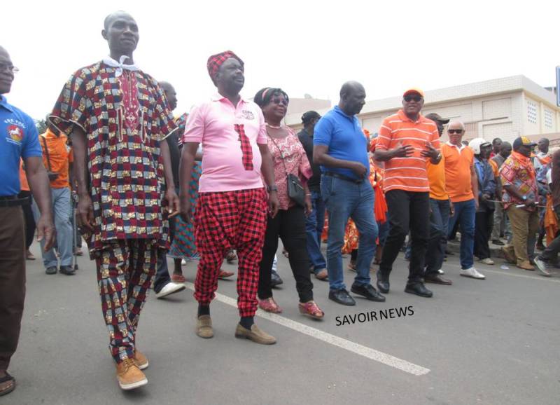 Au milieu du cortège, on retrouvait le chef de file de l’opposition Jean Pierre Fabre et Mme Brigitte Adjamagbo-Johnson (coordonnatrice de CAP 2015).