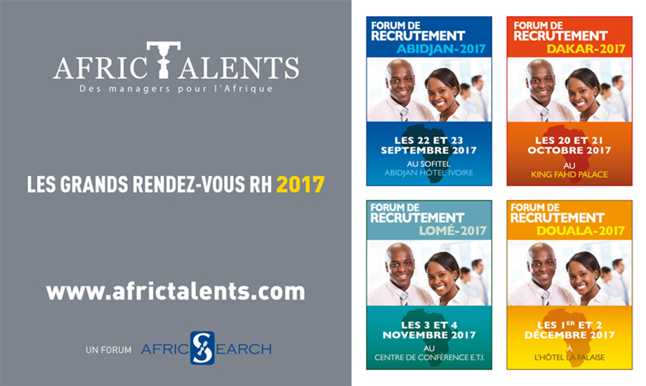 La 3ème édition du Forum AfricTalents se déroulera les 3 et 4 Novembre 2017 au Centre de conférences E.T.I (siège ECOBANK) à Lomé. La campagne de sélection des meilleurs talents est en cours, afin de répondre au mieux aux attentes de nos partenaires recruteurs.