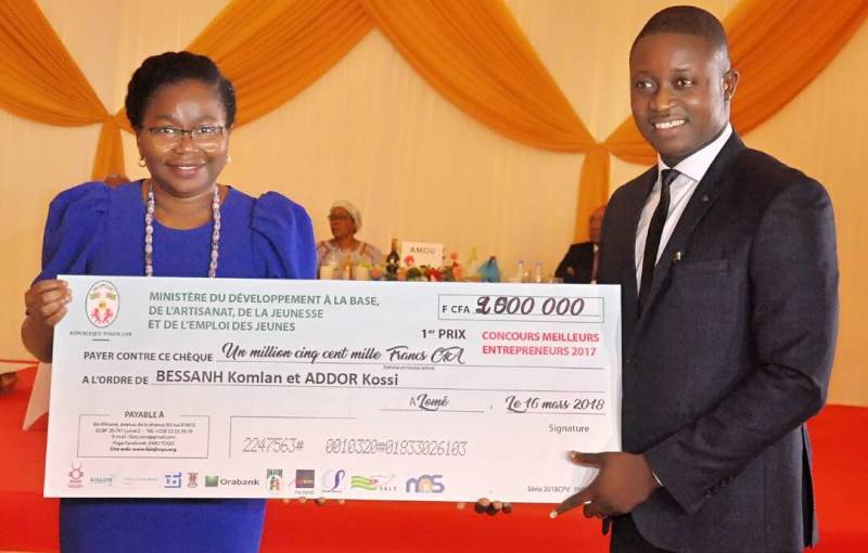 Les quatre autres ont été primés dans la catégorie « petites et moyennes entreprises », avec des chèques pour des montants qui varient entre 1 et 2 millions, accompagnés d’autres lots. Le premier prix a été décroché par les promoteurs des jus Champiso Komlan Bessanh et Kossi Addor.