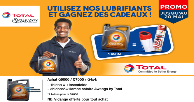 La société pétrolière Total-Togo a lancé une nouvelle campagne de promotion, offrant ainsi plusieurs cadeaux à ses clients qui utiliseront ses lubrifiants, jusqu’au 20 mai.