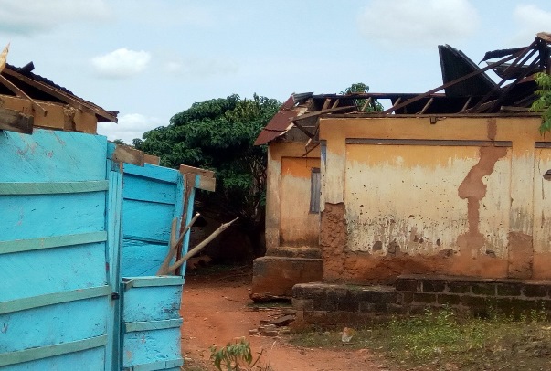 En effet, dans la soirée du jeudi 10 mai, un vent violent précédé d’une pluie a secoué quelques maisons du village de Kpadapé. Dans sa furie, le vent a décoiffé plus de 58 maisons selon les constats et enquêtes de la gendarmerie, emporté des tôles et déraciné des arbres notamment tous les arbres qui servent d’ombrage à la place publique communément appelé place des arbres à palabre. Ce vent après ses ravages, a cédé sa place à une forte pluie qui a mis les victimes sans abris dans une situation désolante.