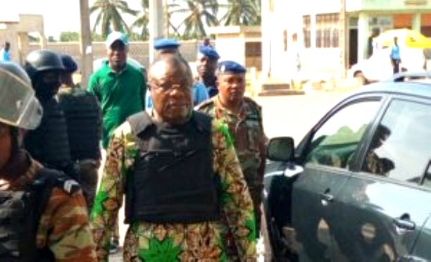 Bien gardé par des éléments de la police Républicaine, KGB, vêtu d’une tenue traditionnelle, portait un gilet pare-balles.
