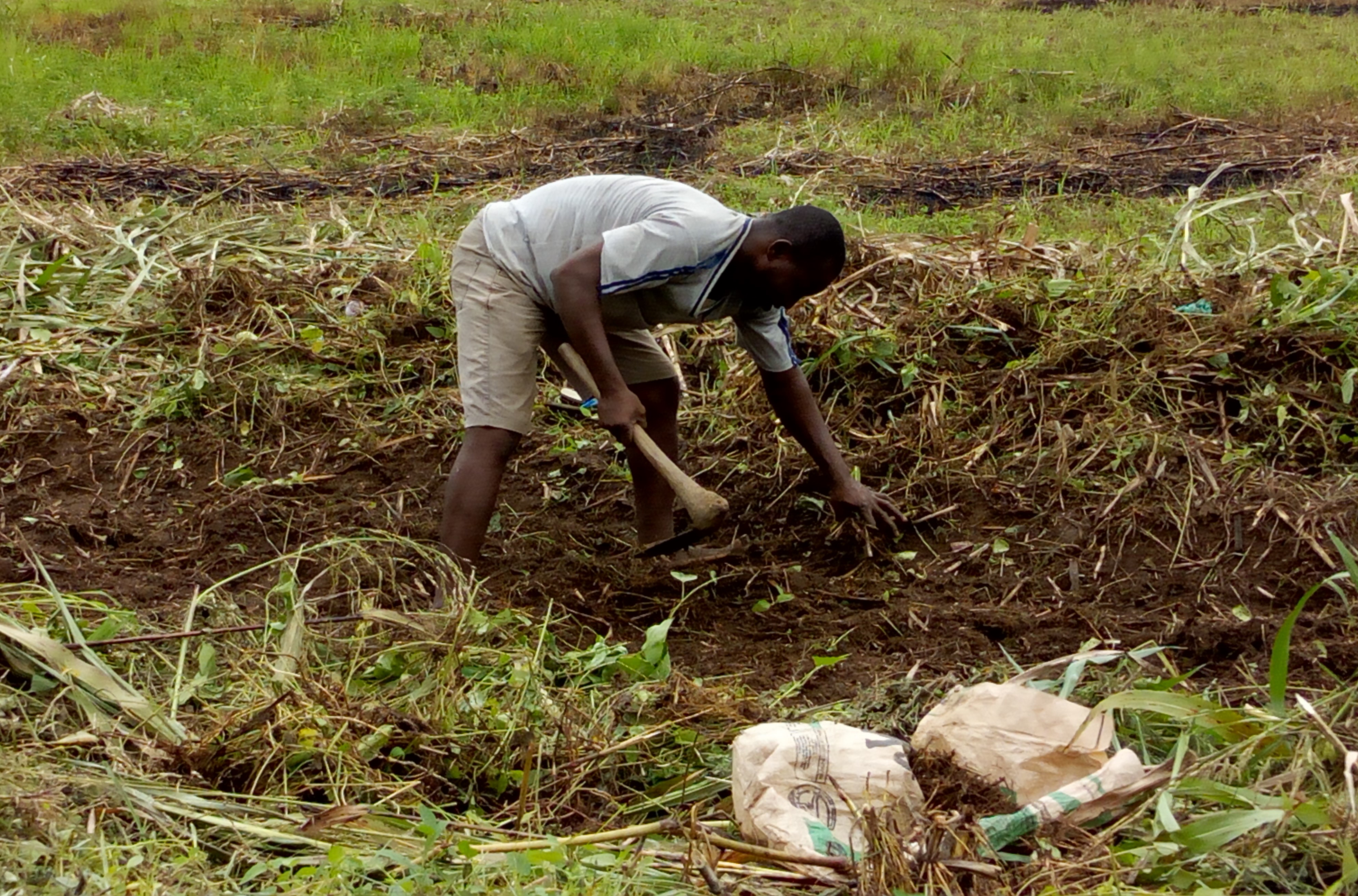 Courbé et la houe en main, Fiosso (32 ans), riziculteur, aménage son petit périmètre, sur l’un des sites rizicoles dans le canton Agomè-Glozou (environ 100 km au nord-est de Lomé/Préfecture du Bas-Mono), dans le cadre du Projet d’Aménagement Hydro-agricole de la basse vallée du fleuve Mono (PBVM). Véritablement mis en œuvre depuis une dizaine d’années dans ce canton, le PBVM fait son petit bonhomme de chemin.