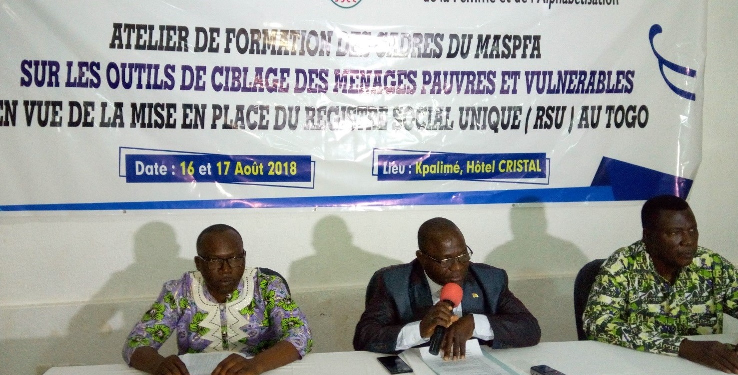 L’objectif poursuivi est de renforcer les capacités des cadres et agents sociaux du MASPFA sur les outils de ciblage pauvres et vulnérables dans le cadre de la mise en œuvre du Registre Social Unique (RSU) au Togo.
