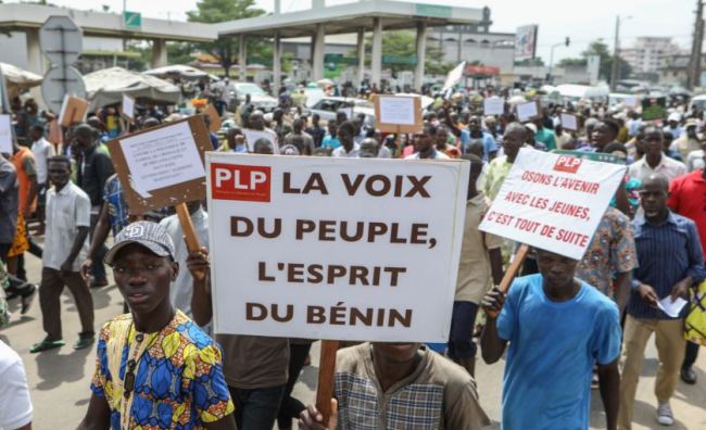 Les manifestants (4.000 selon les organisateurs, plus d’un millier selon des journalistes de l’AFP) sont partis jeudi matin de la Bourse du travail de Cotonou, pour rallier la place de l’Étoile rouge, encadrés par la police républicaine.