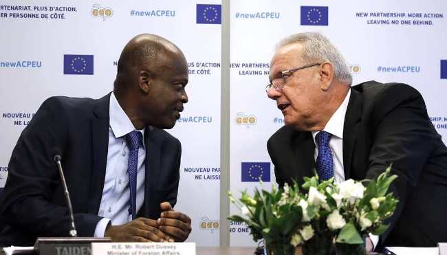 Au cours de la même rencontre, Prof. Robert DUSSEY (Ministre des Affaires Étrangères, de la Coopération et de l’Intégration africaine du Togo) a été désigné négociateur en chef du Groupe ACP. Était aussi présent à cette rencontre, Neven Mimica (Commissaire européen à la Coopération internationale et au Développement).