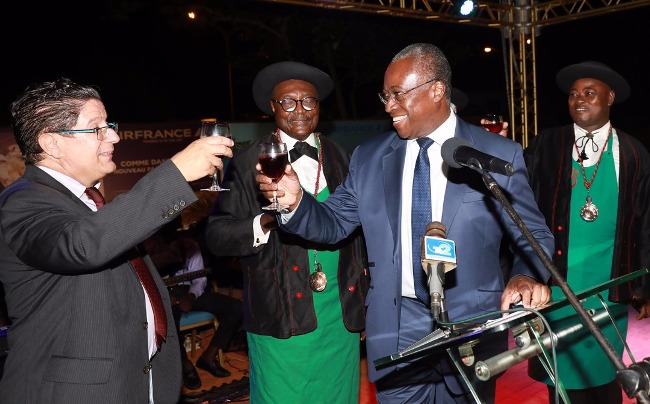 « Cette année, certains disent que le Beaujolais nouveau a un petit arrière goût de Sodabi (la boisson locale à base du vin de palme, fortement alcoolisée). C’est très intéressant », a apprécié Marc Vizy (ambassadeur de France).