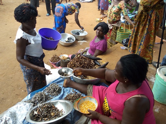 Elise Dansi, élève en classe de 3ème rencontrée dans un coin du marché avec un petit bol, rempli de gari, se confie : « Je veux échanger du gari contre quelques petits poissons fumés, car je veux préparer à la maison, mais nous n’avons pas de poissons ».