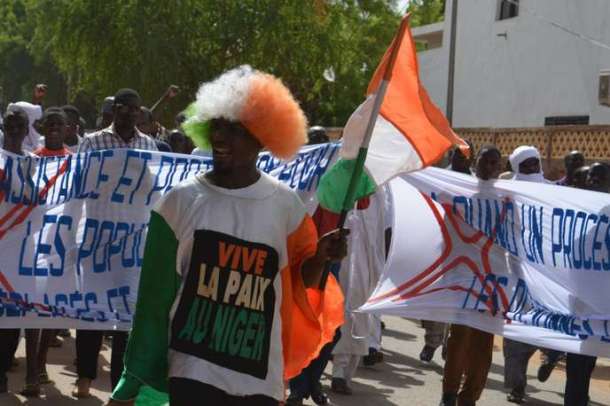 Au rythme de musiques locales dédiées à l’armée nigérienne, les protestataires ont sillonné les rues aux cris de: « Vive le Niger, vive l’armée nigérienne » avant de tenir un meeting devant le parlement.