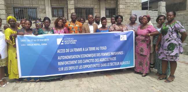 Donc malgré leur forte présence dans ce secteur, force est de constater que la plupart des femmes agricultrices ne sont pas économiquement autonomes. Et c’est face à cette situation que Konrad Adenauer Stiftung a initié le projet « D’accès de la femme à la terre au Togo », mis en œuvre avec son partenaire Wildaf -Togo.