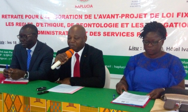 Auparavant Wiyao Essohana (président de HAPLUCIA) a souligné qu’un agent public qui se laisse corrompre, qui raquette, qui prend des commissions est en train de commettre des actes de corruption et viole en même temps les règles d’éthique et de déontologie.
