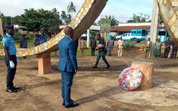 Le préfet a ensuite salué les personnalités présente sur les lieux, notamment les chefs de services, les responsables de partis politiques, les responsables des forces de l’ordre et de sécurité, les autorités traditionnelles avant de procédé au dépôt de gerbe proprement dit au pied du monument.