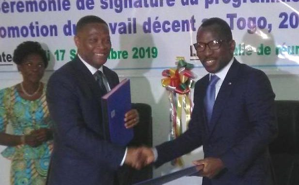 Gilbert Bawara (ministre de la fonction publique, du travail, de la réforme administrative et de la protection sociale) et Dramane Haidara (directeur du bureau pays de l’Organisation Internationale du Travail /OIT à Abidjan) ont paraphé ce mardi à Lomé, un protocole d’accord dans le cadre du Programme pour la Promotion du Travail Décent (PPTD 2019-2022) au Togo, a constaté une journaliste de Savoir News.
