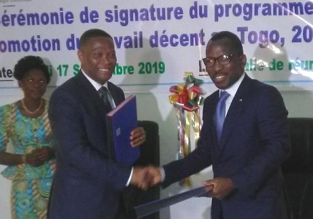 Gilbert Bawara (ministre de la fonction publique, du travail, de la réforme administrative et de la protection sociale) et Dramane Haidara (directeur du bureau pays de l’Organisation Internationale du Travail /OIT à Abidjan) ont paraphé ce mardi à Lomé, un protocole d’accord dans le cadre du Programme pour la Promotion du Travail Décent (PPTD 2019-2022) au Togo, a constaté une journaliste de Savoir News.