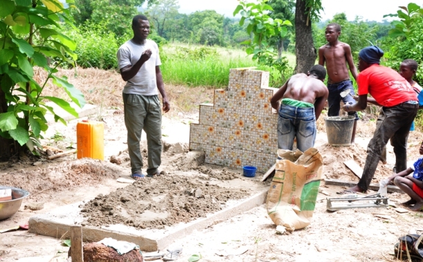 Debout à côté de la tombe de son père défunt, au cimetière des chrétiens de la Paroisse Saint Leonel de Koloware (village du canton de Kparatao, situé à 20 km de Sokodé), Batchazi Eyana, instituteur, donne des ordres aux maçons.