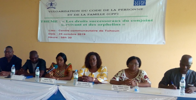 Cette rencontre s’inscrit dans le cadre du projet de vulgarisation du Code des Personnes et de la Famille (CPF). Initiée par la Commission Nationale des Droits de l’Homme (CNDH) avec le soutien du Programme des Nations-Unies pour Développement (PNUD), elle a pour objectif d’amener les participants à s’imprégner des dispositions du Code des personnes et de la famille relative aux droits successoraux du conjoint survivant et des orphelins, leur faciliter la compréhension, rendre stable les ménages et garantir la paix sociale.