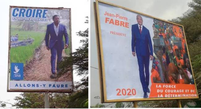 Et sur ces affiches, des slogans : « Pour eux, osons davantage: Allons-y Faure », « Croire en notre futur : Allons-y Faure », « Prospérité du Togo : Allons-y Faure », « Jean Pierre Fabre : la force du courage et de la détermination ».