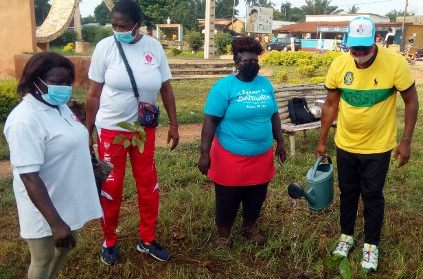 Mobilisées autour de leur présidente, ces femmes battantes ont mis en terre, 120 plants de terminalia catapla, connus sous le nom commun de badamier ou « Aziti ».