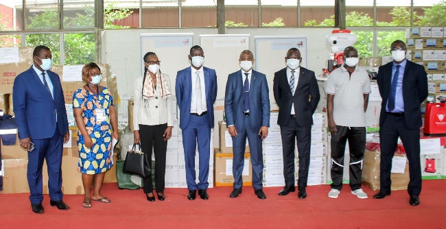 Le don a été réceptionné par M. Dzossou Kodzo KASSAMADA, Conseiller du Premier Ministre en présence de messieurs Daniel ABDOU GALADIMA, Jean-Marie TESSI et Claude GBIKPI respectivement Directeurs Généraux de Banque Atlantique, GTA Assurances et GTA Assurances Vie, de plusieurs membres du Comité de Gestion du Matériel et des Équipements de la riposte Covid-19 et de la Directrice Générale Adjointe de GTA Assurances Vie.