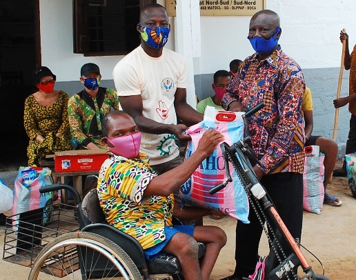 Chaque personne vivant avec un handicap a reçu un kit composé d’un sac de riz de 5 kg, des boîtes de tomates concentrée, du haricot pour 5 kg, du gari et du maïs pour 5 kg, des masques et des détergents pour se laver les mains. La distribution s’est poursuivie dans les maisons dans le respect des mesures barrières.