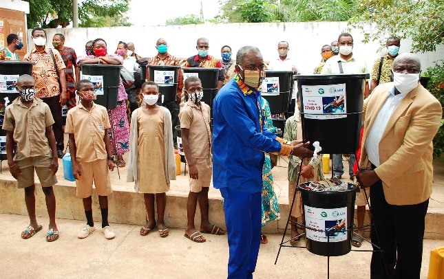 Le matériel est composé de dispositifs de lavage de mains, de détergents et de masques pour assurer la protection des candidats et enseignants durant la période des examens. Cette action est financée par les partenaires, Afrique 70 et la Guilde.