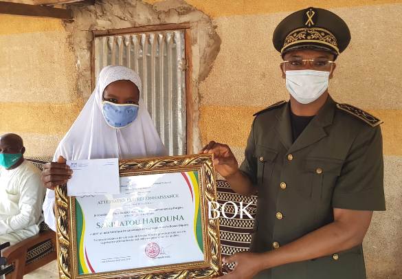 Djibril Mama Cissé (Préfet du Borgou) s’est rendu personnellement à Woria, village de l’héroïne, pour lui remettre main à main, une « attestation de reconnaissance », accompagnée d’une enveloppe de 100.000 F.CFA.