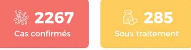 1.942 patients sont guéris et 285 autres sont sous traitement. Au total 122.605 (Tests PCR) et 36.276 (Tests TDR) ont été effectués, depuis la découverte du premier cas le 16 mars.
