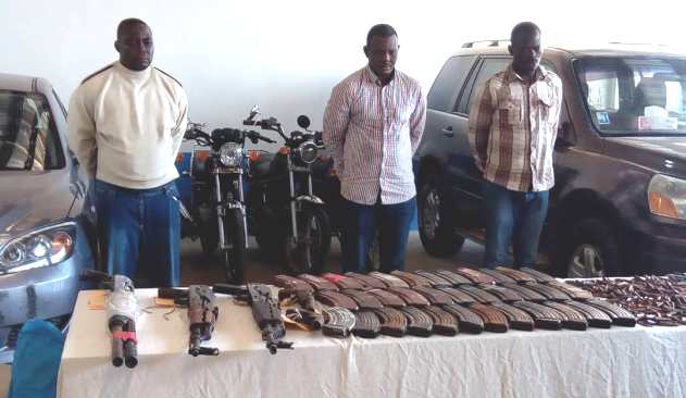 Ont été saisis, après des perquisitions: deux fusils AK47, deux pistolets, un fusil à pompe, 35 chargeurs de fusil AK47, 713 munitions de calibre 7,62 mm, 66 munitions de calibre 12 mm, 2 voitures, 5 motos et 8 plaques d’immatriculation de motos…, a précisé le directeur de la police. FIN