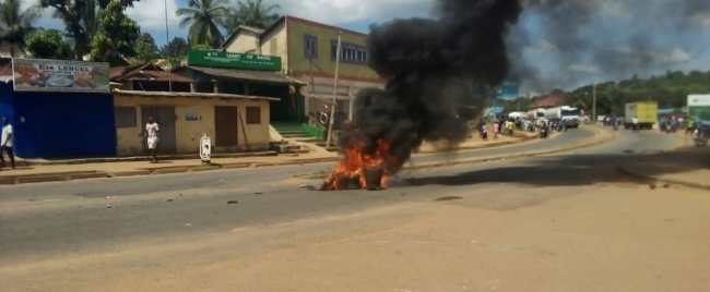 C’est aux alentours de 10H qu’une centaine de conducteurs de taxis-motos ont érigé des barricades et brûlé des pneus sur cette artère internationale, aux carrefours de Nangbéto et en face du lycée d’Agbonou.