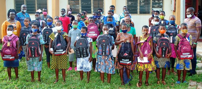 Ces récipiendaires ont reçu chacune, un kit composé de cahiers 100 et 200 pages, des stylos rouges et bleus, un ensemble géométrique, un livre de français (textes et activités), un sac d’écolier ainsi que du tissu pour confectionner leur uniforme.