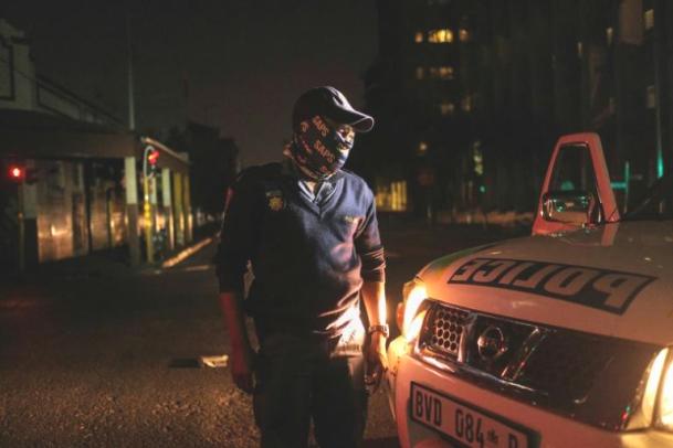 « Rentre chez toi, je pourrais t’arrêter pour ça ». Arme et matraque à portée de main, les policiers ont multiplié les contrôles mardi soir dans les rues de Johannesburg, pour faire respecter les nouvelles restrictions liées au Covid-19.