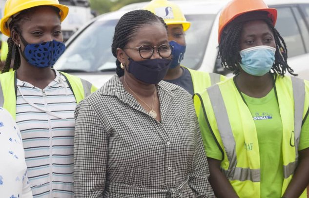 Mme Victoire Tomégah-Dogbé, lors de la visite des chantiers de réhabilitation de la RN34 (Lomé-Vogan-Afoin) et de la RN5 (Lomé-Kpalimé)