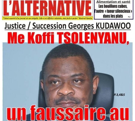 Dans sa parution de mardi, le journal titrait à la une: « Justice/succession Georges Kudawoo: Me Koffi Tsolenyanu, un faussaire au gouvernement », article jugé diffamatoire, suite à une plainte du ministre pour « publication de fausses informations, offense et diffamation ».