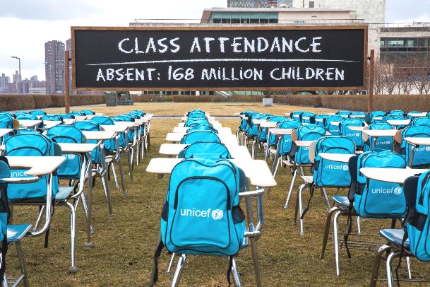 L’UNICEF a donc dévoilé le 3 mars dernier, une maquette de salle de classe dénommée la « Salle de classe de la pandémie », composée de 168 pupitres vides, représentant chacun 1 million d’enfants vivant dans les pays dont les écoles sont fermées depuis près d’un an. Cette initiative vise à attirer l’attention sur la situation d’urgence en matière d’éducation et sensibiliser à la nécessité, pour les gouvernements, de garder les écoles ouvertes, ou de leur accorder la priorité dans les plans de réouverture.
