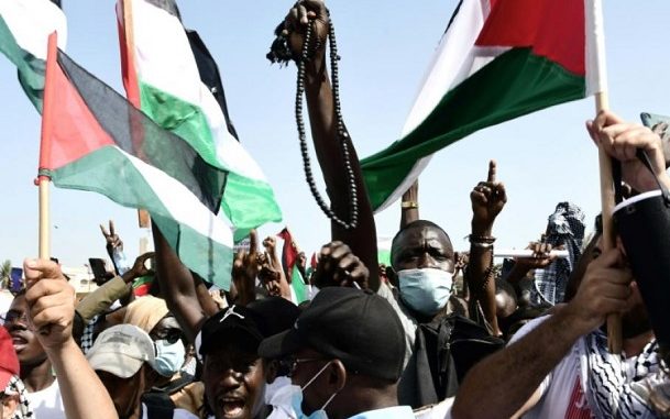 « A bas Israël » ou « Israël dégage », ont scandé les manifestants, auxquels s’est joint l’ancien maire de Dakar, Khalifa Sall, ou l’activiste Guy Marius Sagna.