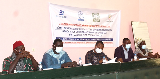 Cette formation assurée par le Cabinet Dutyco SAS, va permettre d’aborder avec les producteurs la chaîne des valeurs agricoles, la commercialisation des produits agricoles, le développement des stratégies de marketing, négociation inter maillon, le modèle d’affaires des ZAAP et l’élaboration d’un contrat.