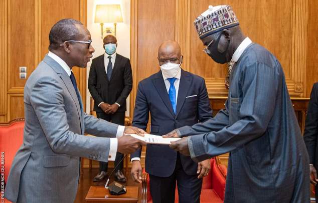 Patrice Talon, recevant les lettres de créance du diplomate nigérian
