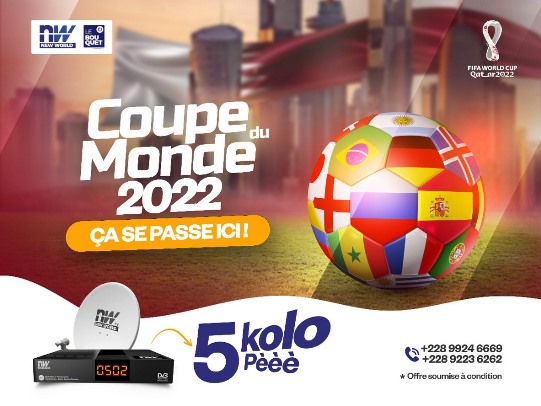 New World TV, première chaîne d’informations internationale du Togo, met les bouchées doubles. Après avoir obtenu l’exclusivité des droits de retransmission de la Coupe du monde Qatar 2022 en Afrique francophone subsaharienne, cette chaîne casse la baraque avec une promotion exceptionnelle de son décodeur.