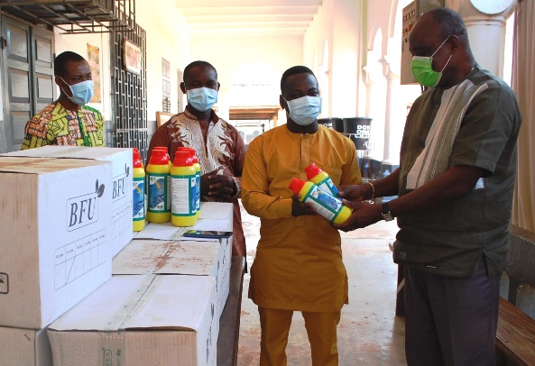 Pour le maire, ces produits vont permettre de désinfecter les milieux hospitaliers, les salles d’opération, les bureaux et de nettoyer les sols des Centres médico-sociaux (CMS), des centres de santé du district sanitaire de Kloto et le centre de prise en charge des malades de Covid-19.