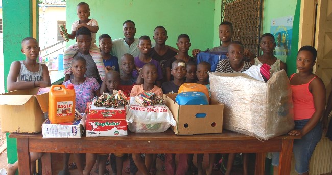 Le don remis à l’orphelinat par leur représentant au Togo, Dr Atchéki Jules est composé: d’un sac de riz de 25 kilogrammes, un carton de boites de tomate concentrée, un carton de spaghetti, un carton de sardines, un bidon 5 litres d’huile végétale et des effets vestimentaires (chaussures et chemises, de matériels ludiques et des articles pour l’éducation scolaire).
