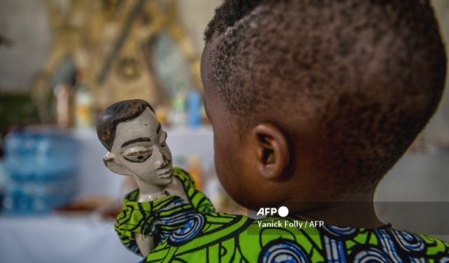 Dans le vaudou, religion née au Bénin et basée sur les forces de la nature et le culte des ancêtres, les jumeaux sont célébrés comme des demi-dieux, qu’ils soient vivants ou morts. Au temple de la prêtresse Antonia Dhossa, situé à Abomey-Calavi, en banlieue de la capitale économique Cotonou, « nous avons décidé de les honorer comme nous implorons nos autres divinités », explique la jeune femme dans ses attributs de dignitaire, plusieurs rangées de perles multicolores au cou, au pied et au bras.