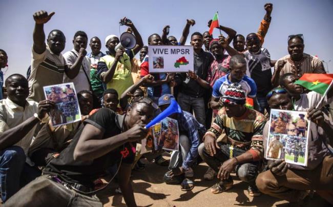 « Vive le MPSR », la junte du Mouvement patriotique pour la sauvegarde et la restauration, « Vive (le lieutenant-colonel Paul-Henri Sandaogo) Damiba », le chef du MPSR qui a été investi mercredi président du Faso par le Conseil constitutionnel, ont scandé les manifestants, majoritairement vêtus de maillots blanc et jaune à l’effigie du nouvel homme fort du pays.