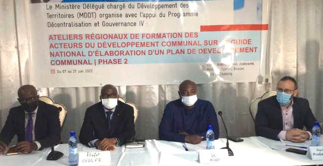 Initiée par le ministère délégué chargé du Développement des territoires, cette formation bénéficie de l’appui du Programme Décentralisation et bonne Gouvernance (ProDeG IV), cofinancé par le ministère fédéral allemand de la coopération économique et du développement (BMZ) et par l’Union européenne, mis en œuvre par la Coopération technique allemande (GIZ).