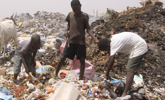 Des enfants sur des tas d'ordures à Lomé