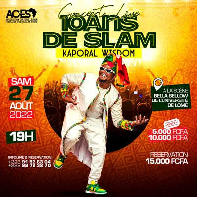 Pour ses 10 ans de Slam : Kaporal Wisdom en concert sur la scène Bella Bellow de l’Université de Lomé le 27 Août