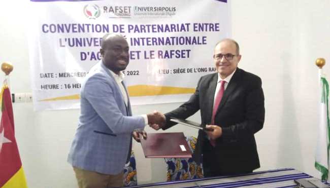 Le Réseau Africain pour la Formation, la Science et l’Émergence des Talents (RAFSET) a signé une convention de partenariat avec l’Université Internationale d’Agadir au Maroc, partenariat visant à mettre des bourses d’études à la disposition des nouveaux bacheliers togolais.