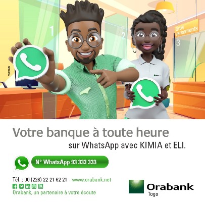 Orabank Togo, filiale du Groupe bancaire Oragroup, annonce le lancement du service WhatsApp Banking, une solution innovante qui permet d’effectuer des opérations bancaires à partir d’un smartphone, d’une tablette ou d’un ordinateur via son numéro WhatsApp.