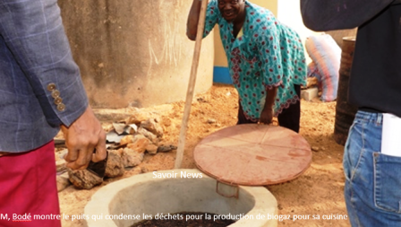 « Cela permet d’avoir assez de matières fécales auxquelles nous ajoutons d’autres déchets et de l’eau pour activer la fermentation. Les latrines sont reliées à un puits assez profond qui condense le caca. Ce puits communique directement avec un bio-digesteur qui, grâce à la décomposition -due à la fermentation- des matières organiques, génère du biogaz qui transite par un tuyau directement vers la cuisine pour la cuisson des repas : toute ma famille a abandonné l’utilisation du bois« , dit M. Bodé.