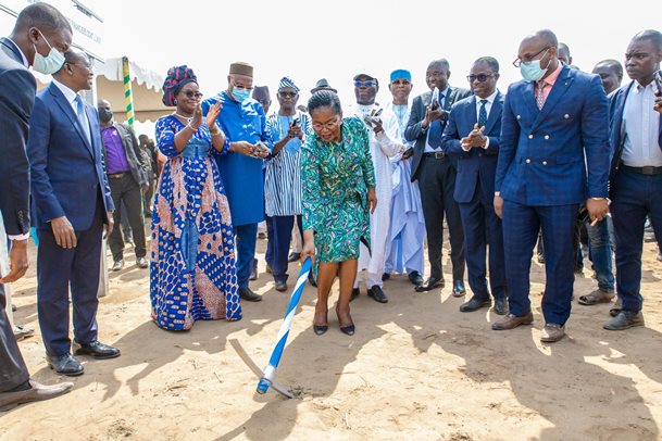 Mme Victoire Tomégah-Dogbé donnant le premier coup de pioche